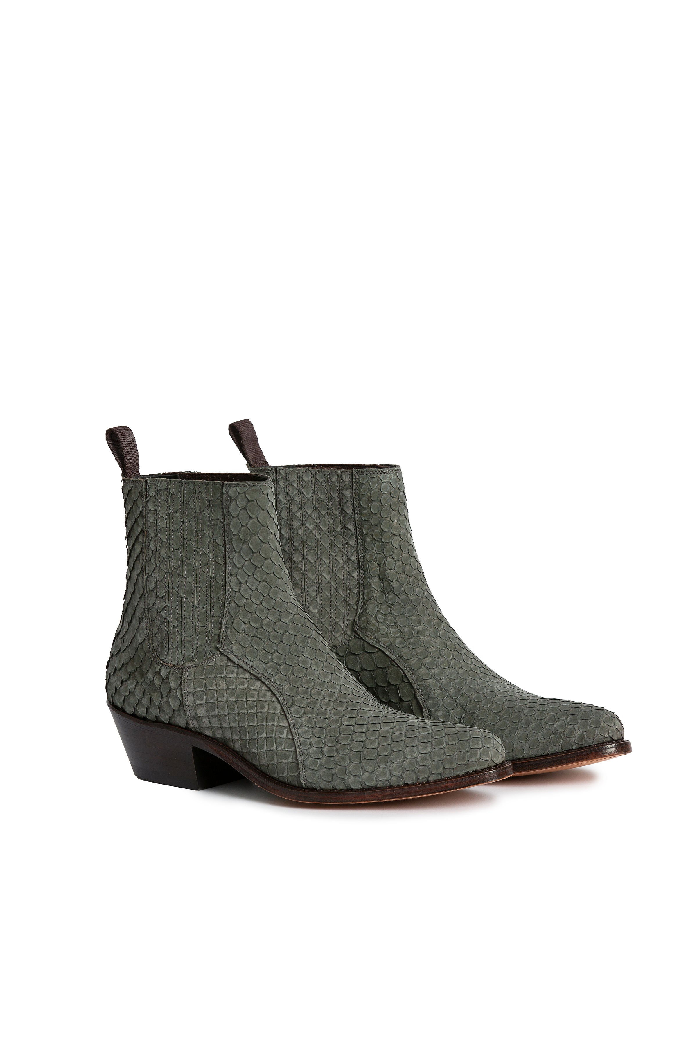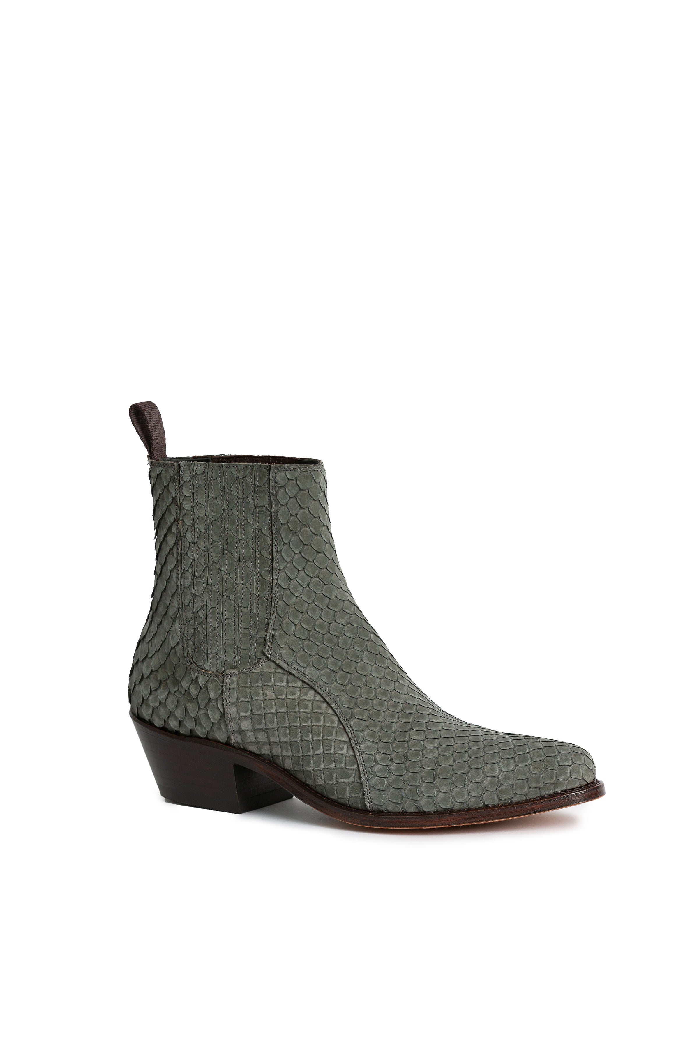 Ankle Western-style boots in this amazing Mat Grey Python leather handmade with a modern style would be a stylish and unique choice for both office and street fashion for men. They would be versatile and could be worn during the day or night.